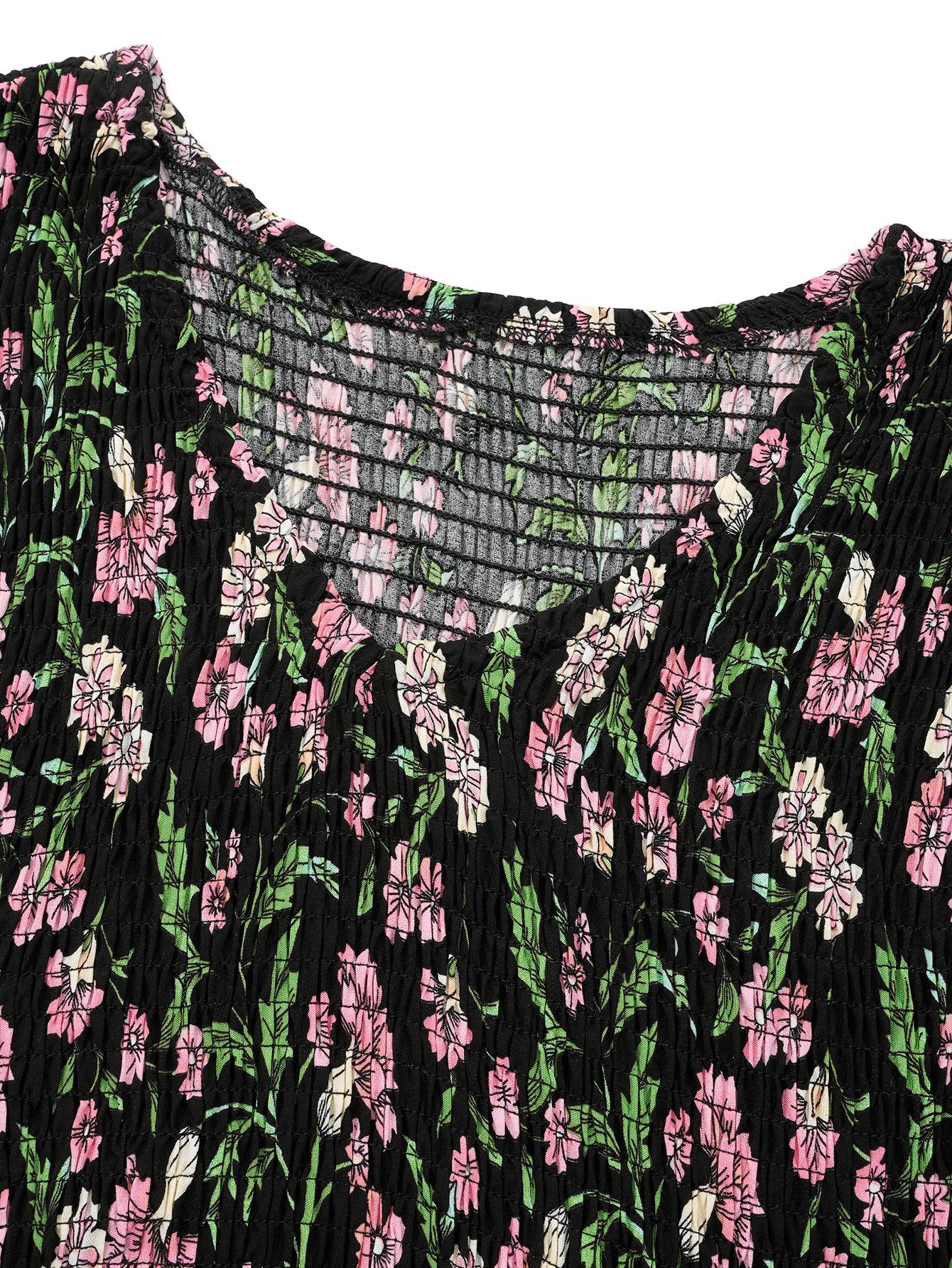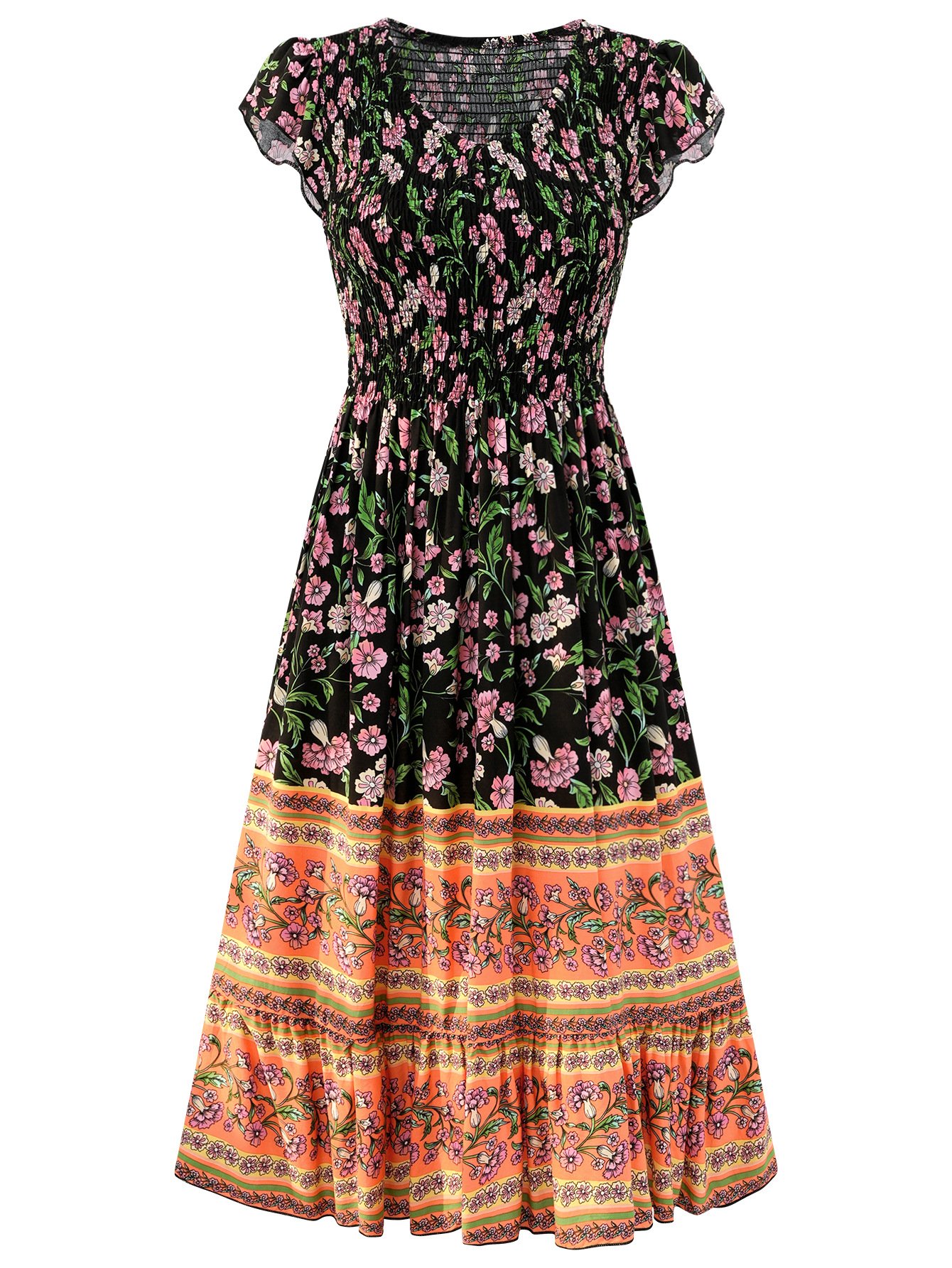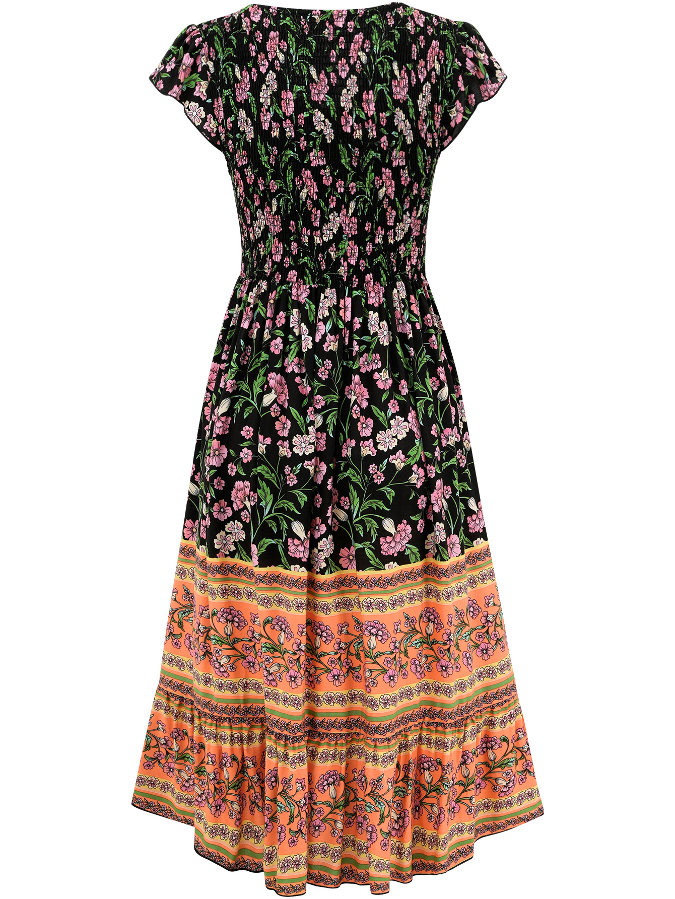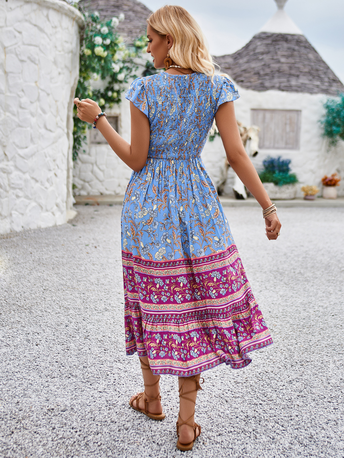 Womens Floral V-neck Dress - Summer Casual Ruffle Sleeveless Bohemian Beach Dress