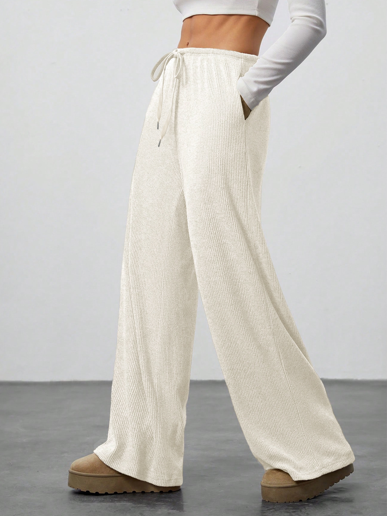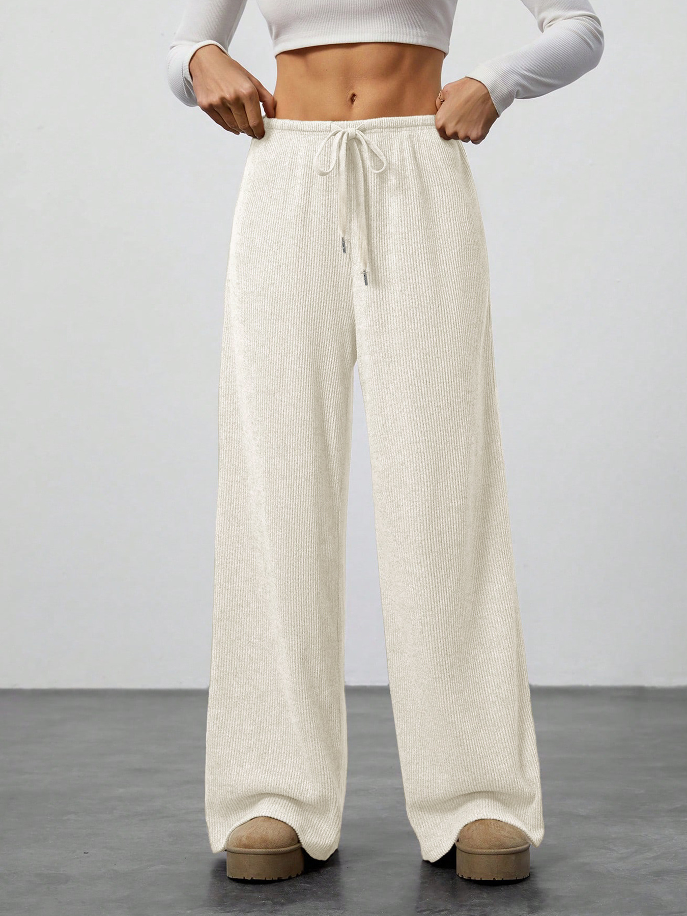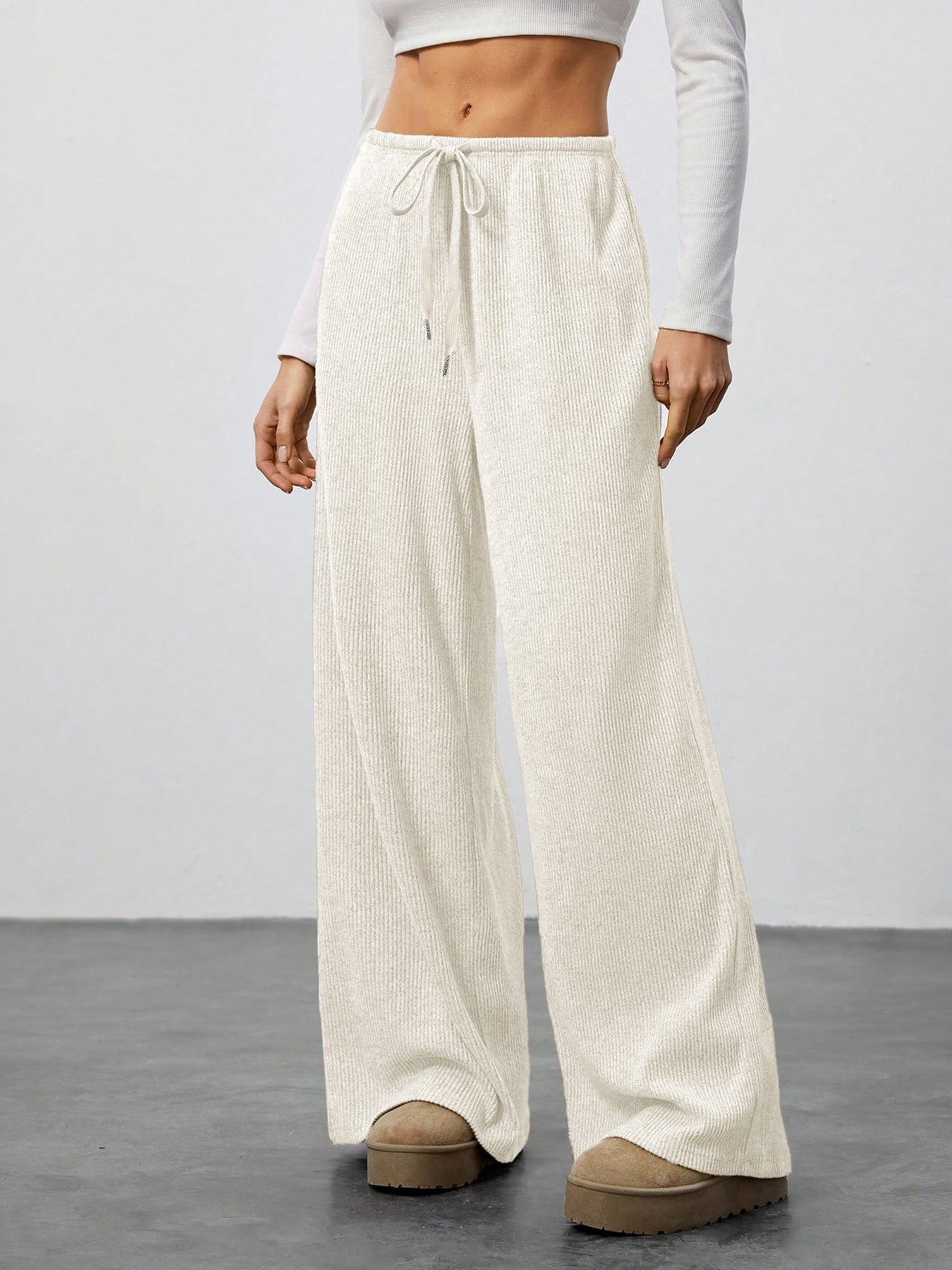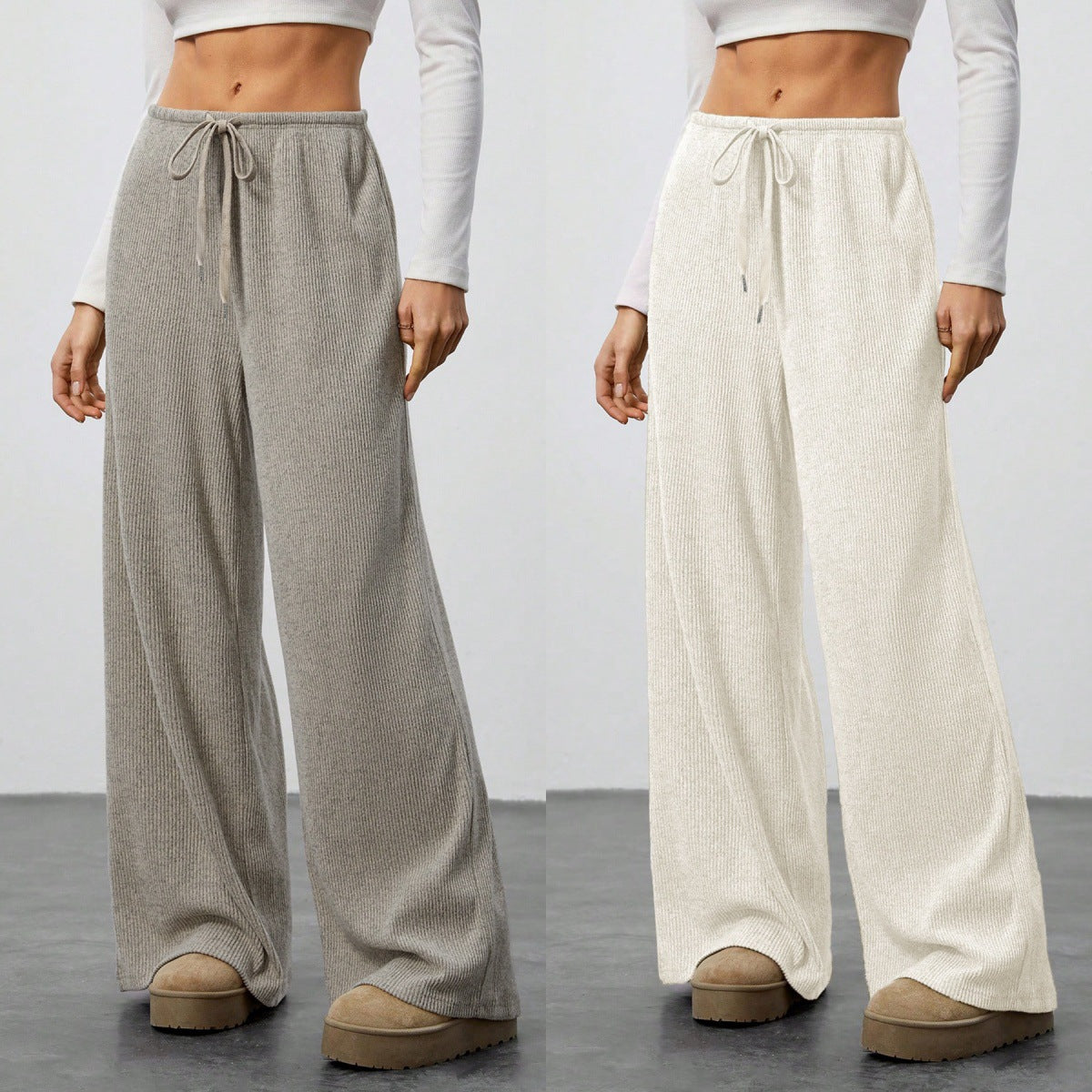 Womens Solid Color Loose Pants - Flowy Drawstring-Waist Wide-Leg Casual Trousers