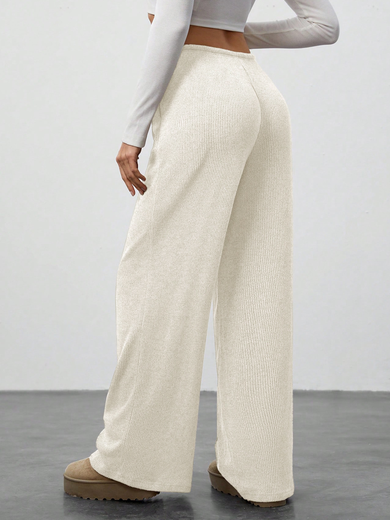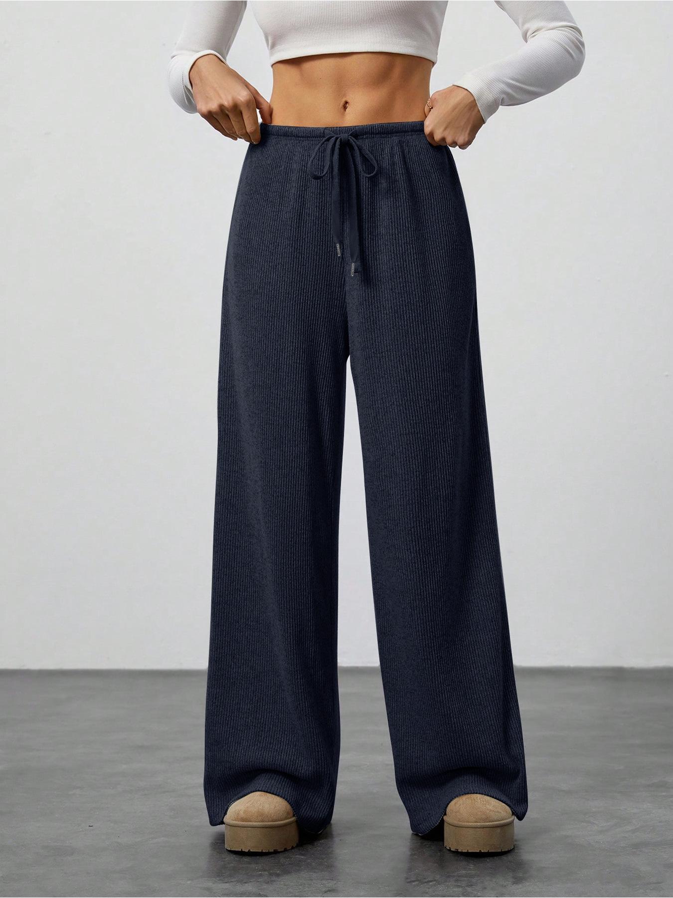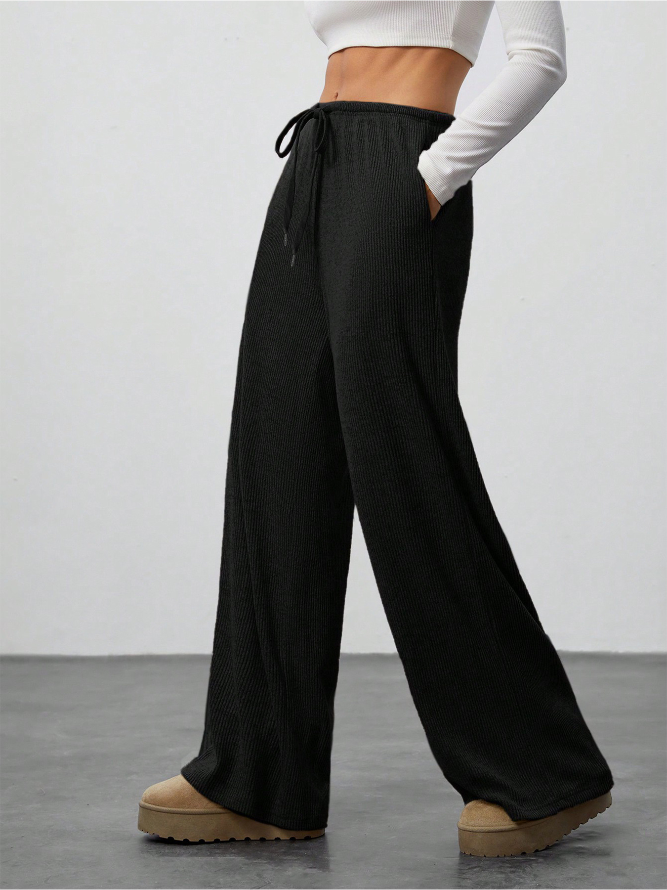 Womens Solid Color Loose Pants - Flowy Drawstring-Waist Wide-Leg Casual Trousers
