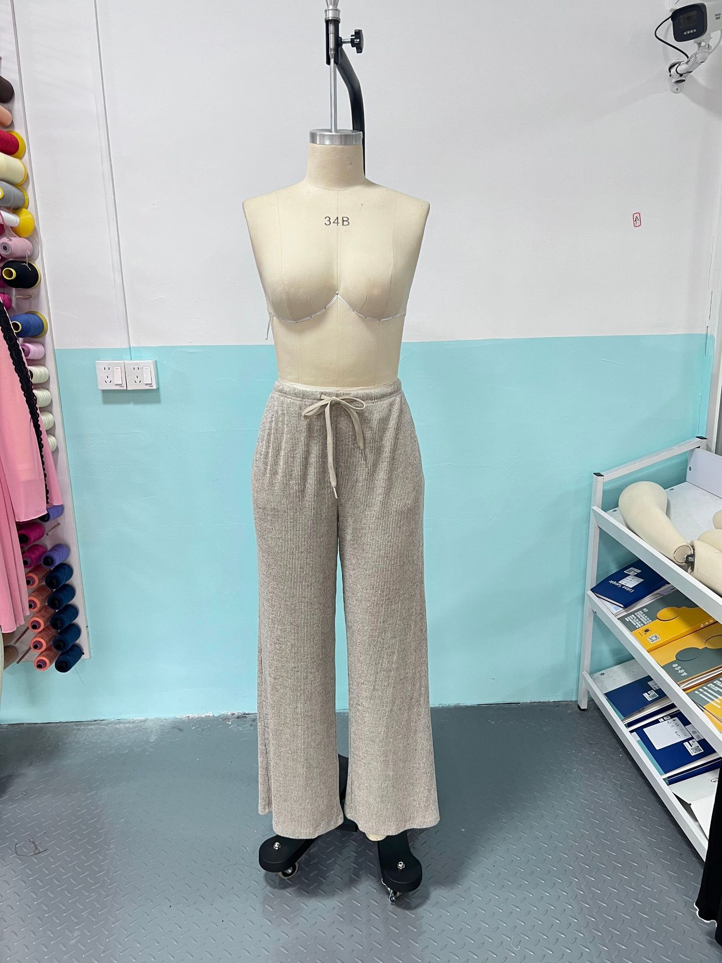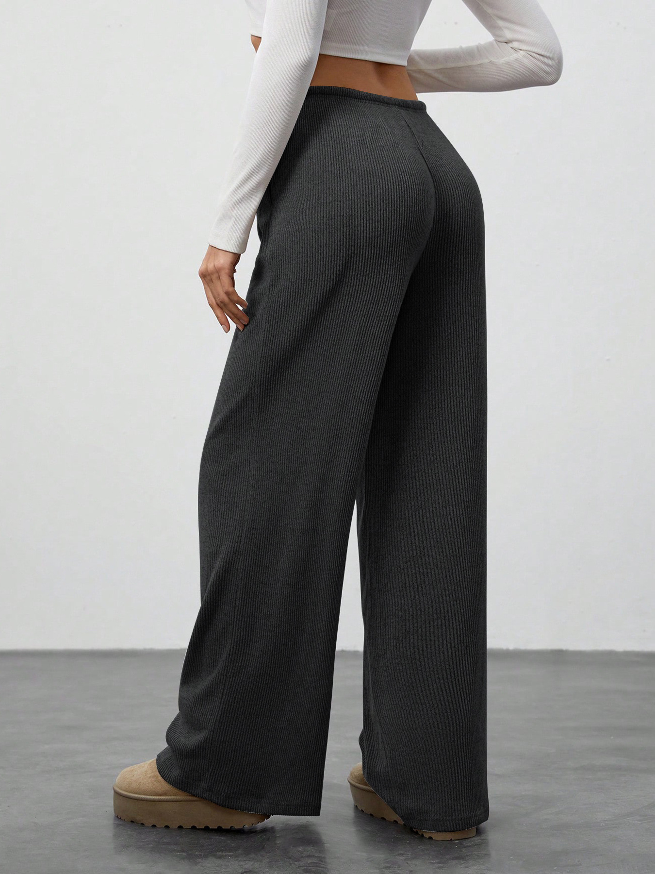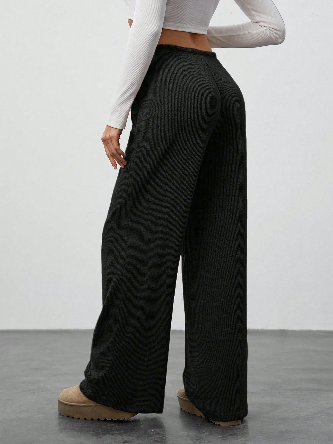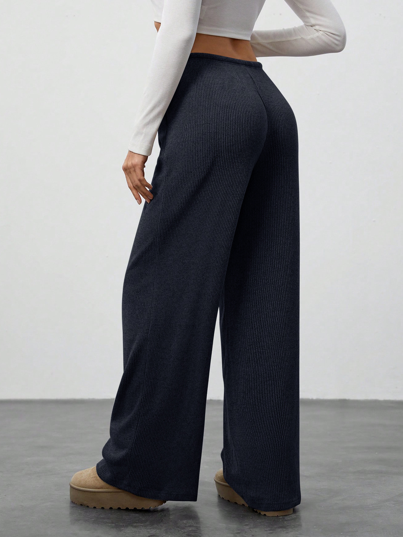 Womens Solid Color Loose Pants - Flowy Drawstring-Waist Wide-Leg Casual Trousers